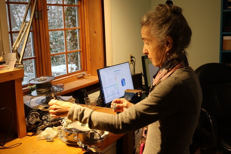 3-d plot of 1st 3 cantilever modes; X axis is posit'n on beam, 2nd axis, amplitude & 3rd is frequency